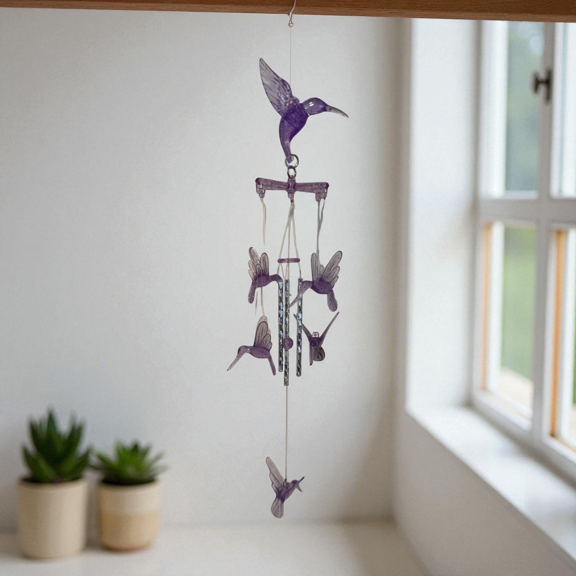 Add a sense of music and impactful spirit to your indoor or outdoor space with our Glow In The Dark 20" Hummingbird Chime. These unique accents offer peacful sounds that bring a sense of calm and relaxation. Place in your, patio, children's room or any other space for added charm.