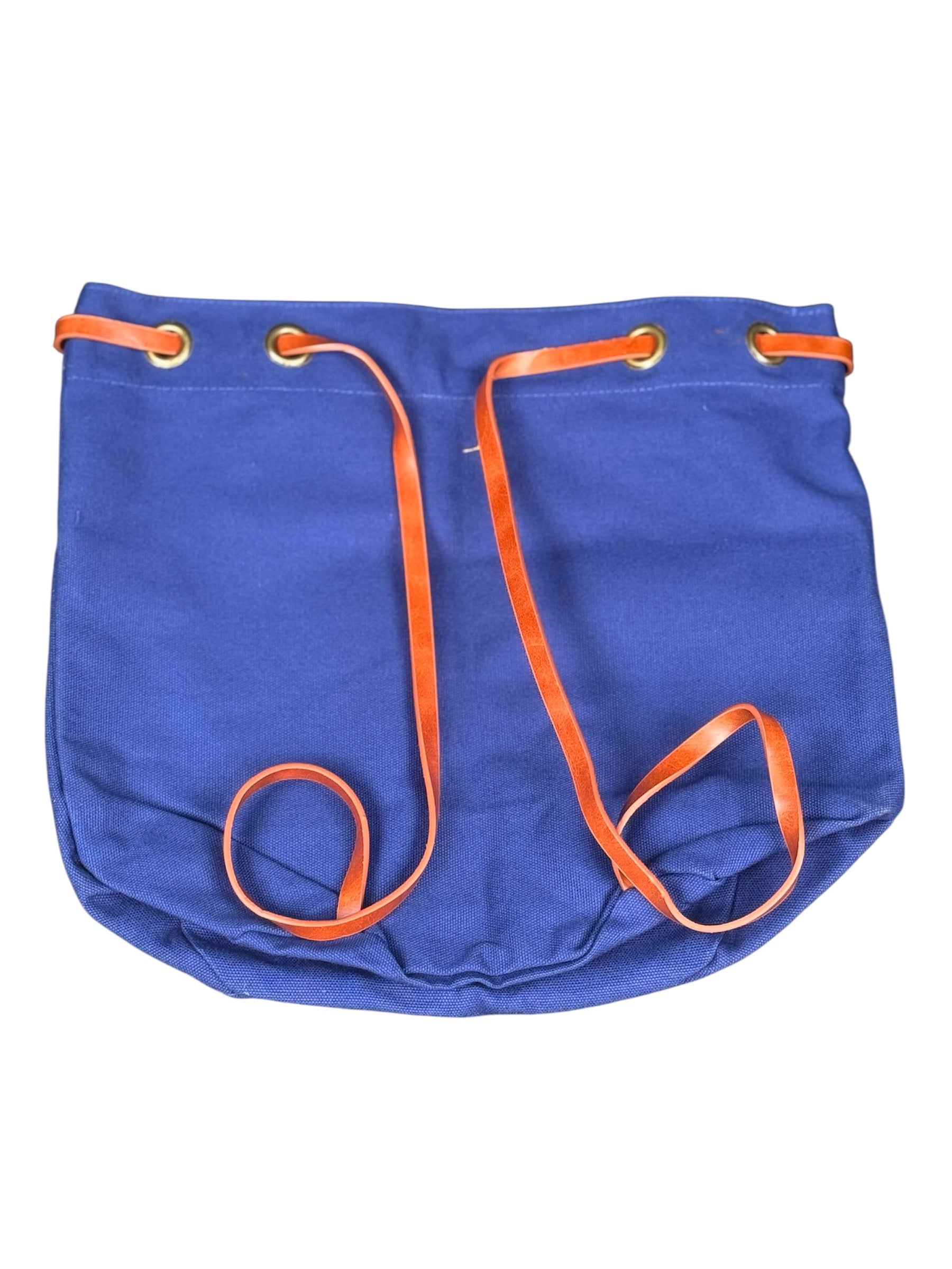 Our LUXE Navy Blue Canvas Bucket Backpack is designed for durability as well as practicality. With two deep pockes built in the front, a leather-like strap, and sturdy workmanship, it makes for a well planned handy backpack.